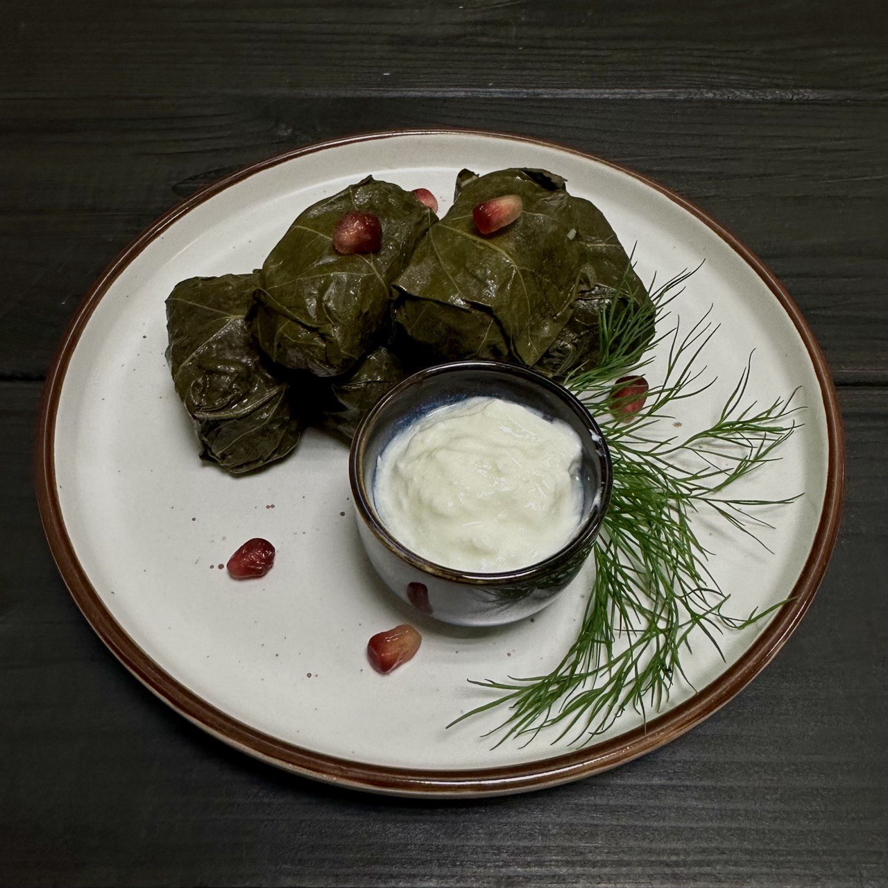 Начинка из свинины и говядины с рисом, завернутая в виноградные листья.