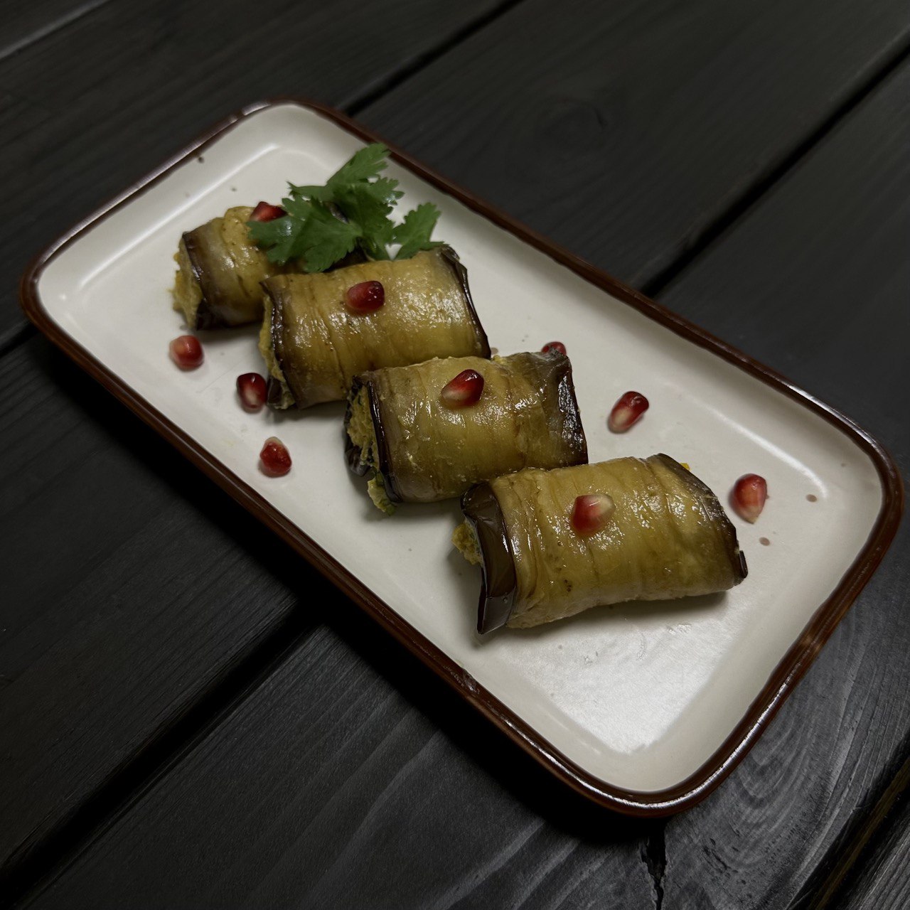 Рулеты из баклажанов с начинкой из тыквы. Порция идет по весу, но обычно получается 4 рулетика.