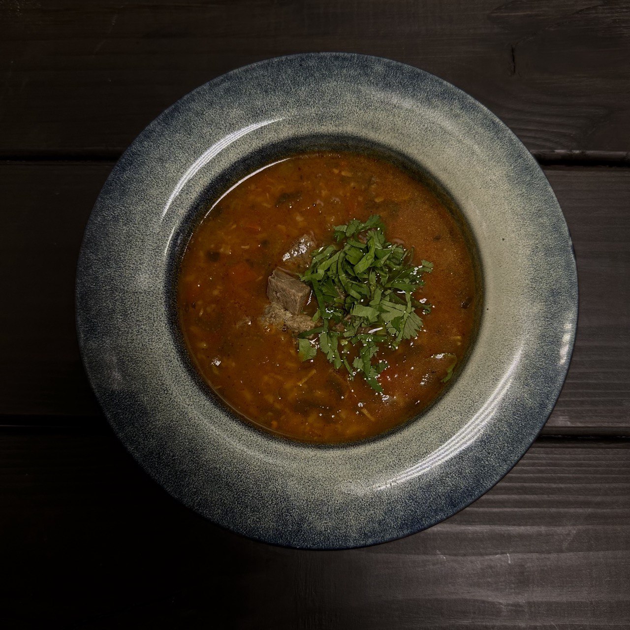 Самый известный традиционный грузинский суп с говядиной и рисом. Немного островат.
