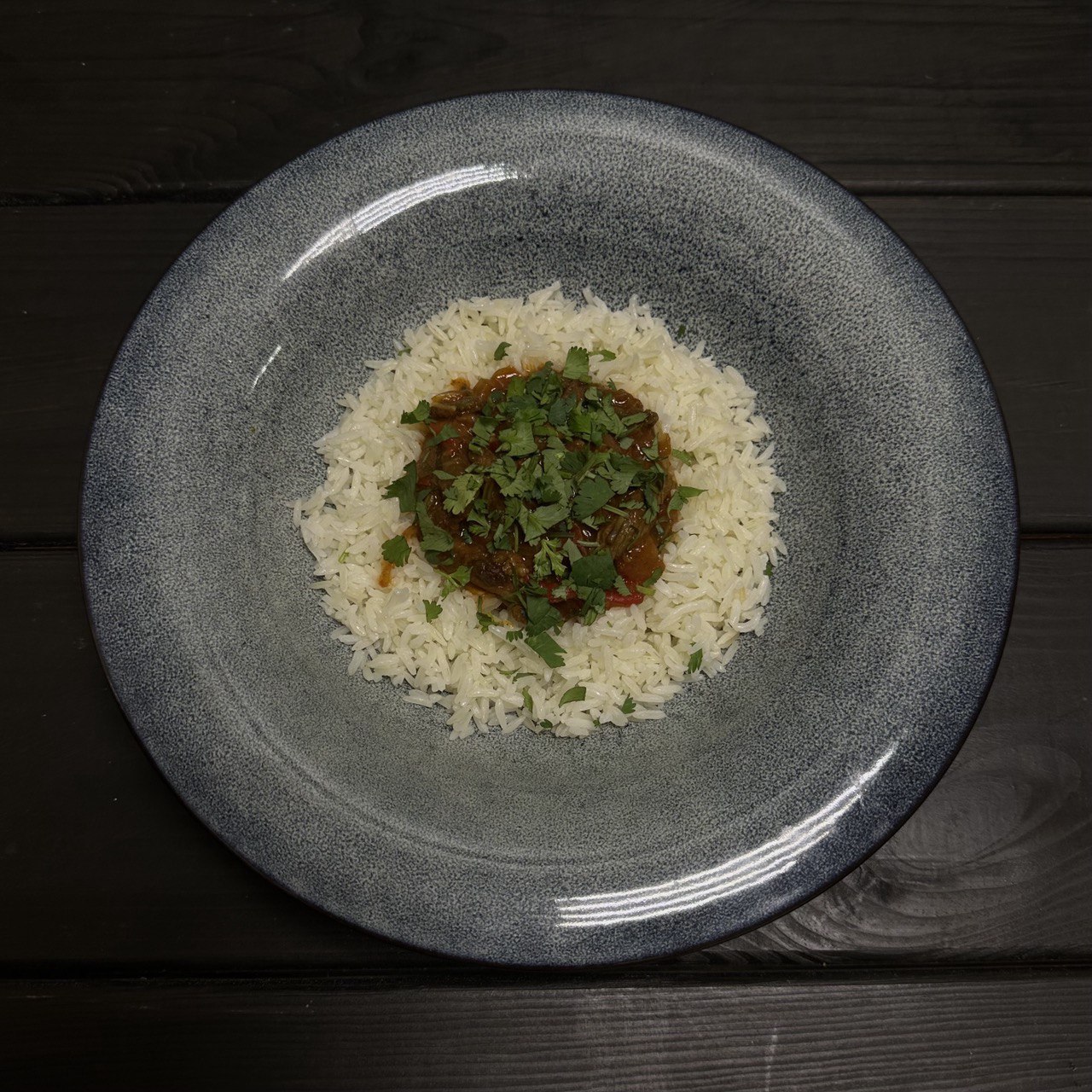 Нежная тушеная говядина с болгарским перцем и с рисом на гарнир